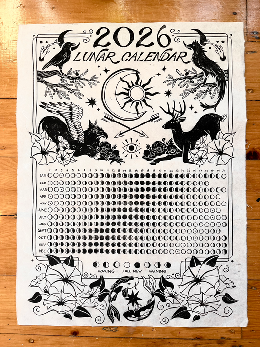 2026 Lunar Calendar // Hand Carved Lino