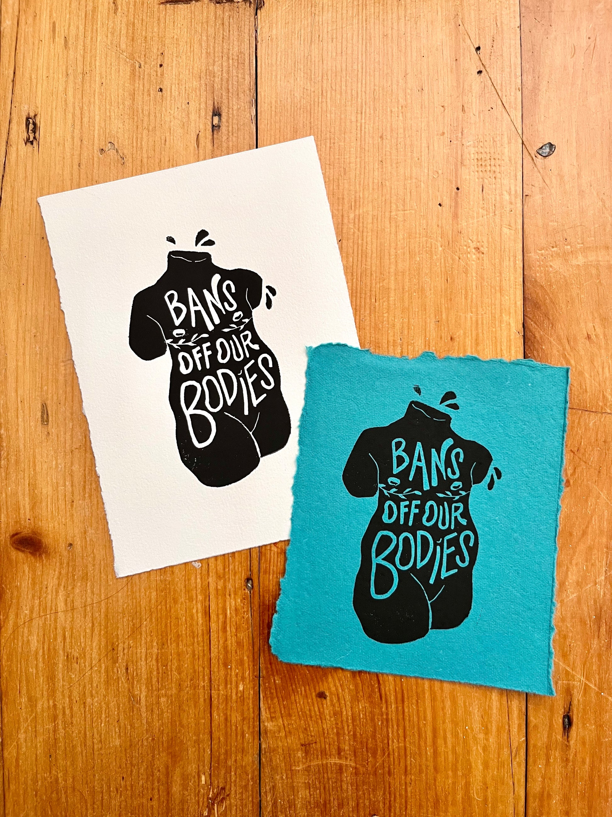 Each print is hand carved and individually printed. They are numbered per edition, and may differ slightly between images making each unique. Choose between two color paper: white or special edition teal.