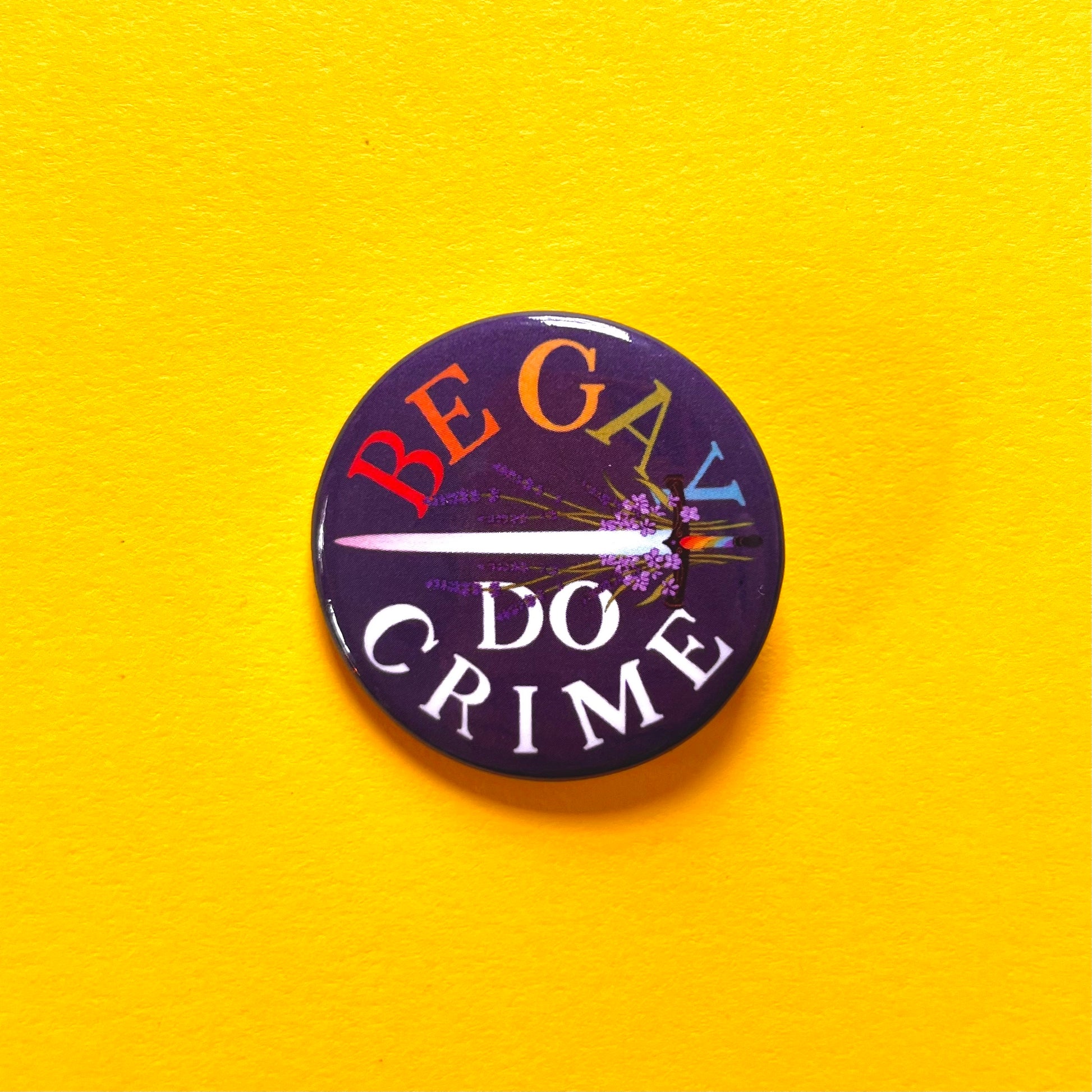 Show off your gay pride with cute 1.5 inch buttons depicting a rainbow and trans sword with lavender surrounding.