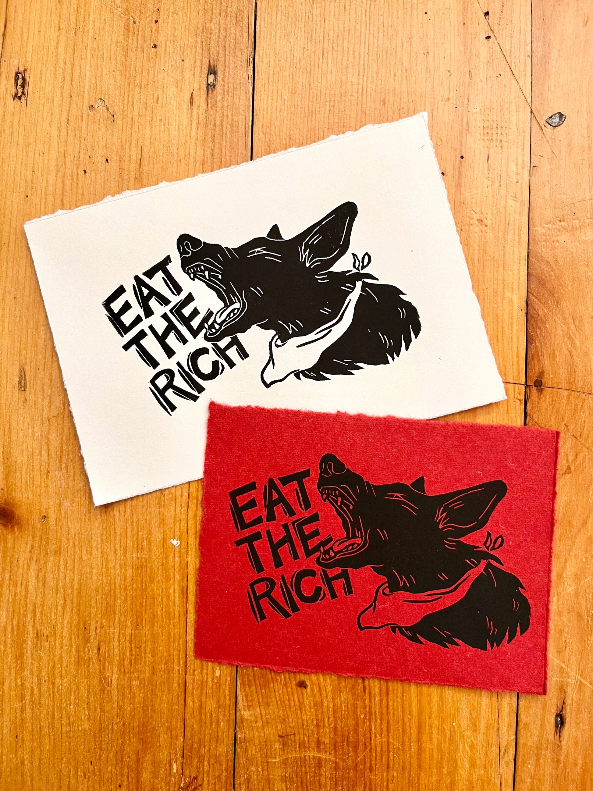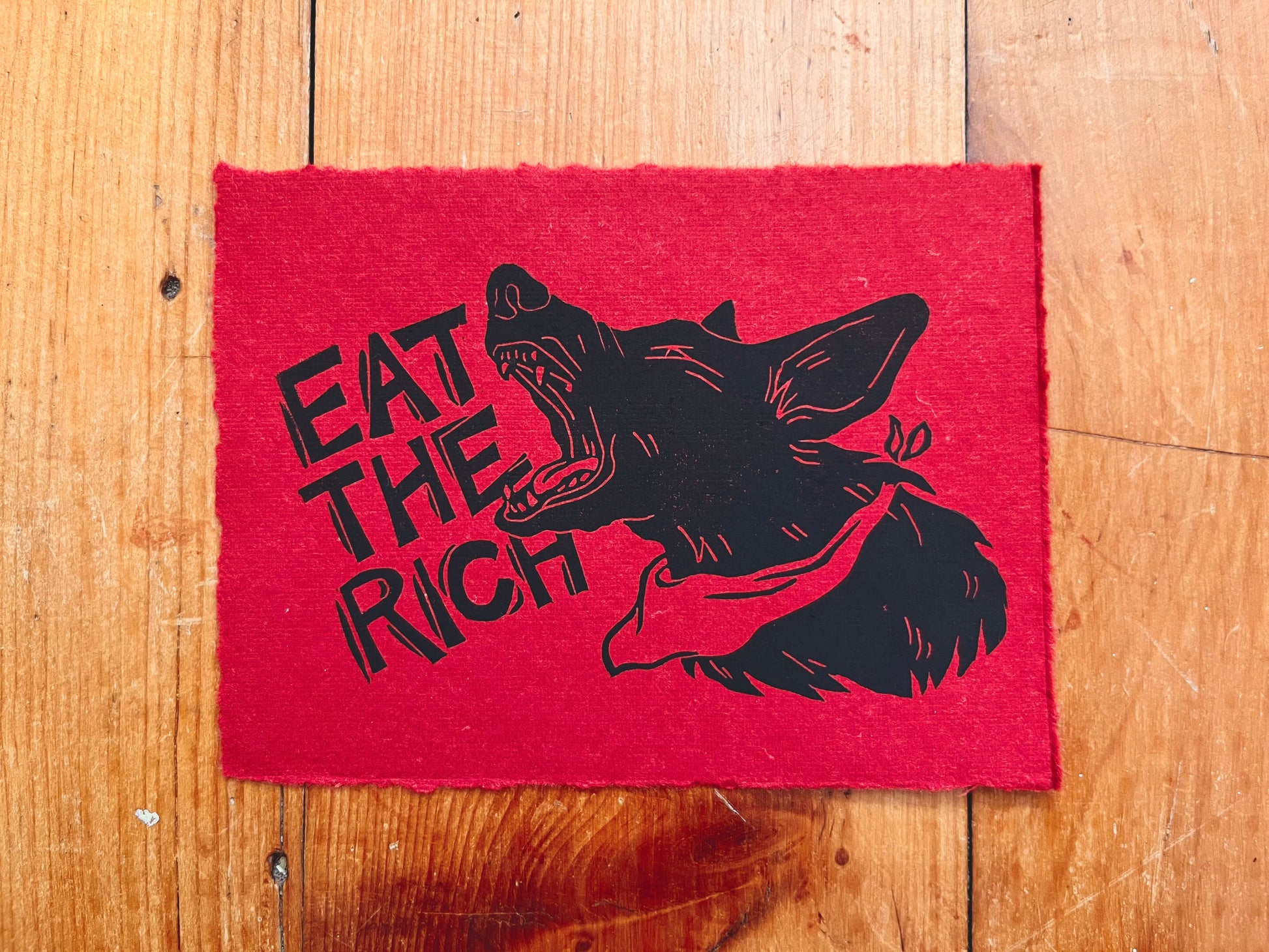 Show your class solidarity with this hungry dog demanding to "eat the rich"