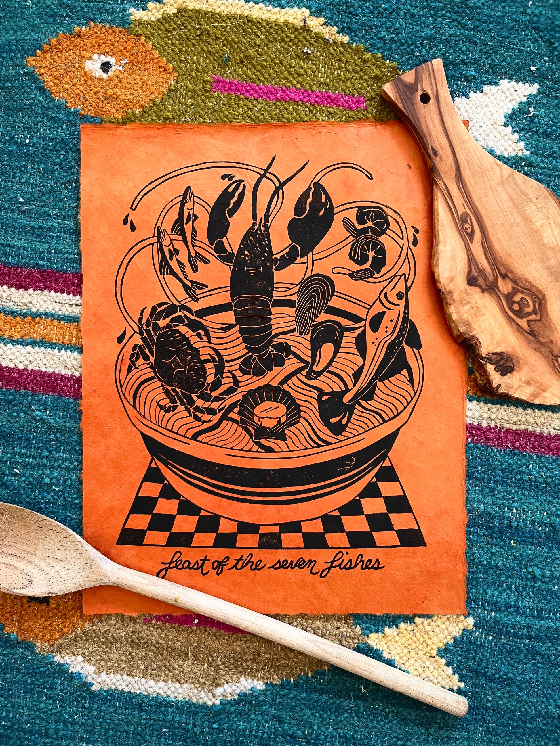 Whether you're Italian or not, and whether you celebrate this tradition or not, this print is a perfect one for fish and food lovers alike. Celebrate the season with a delicious dish to share with friends.