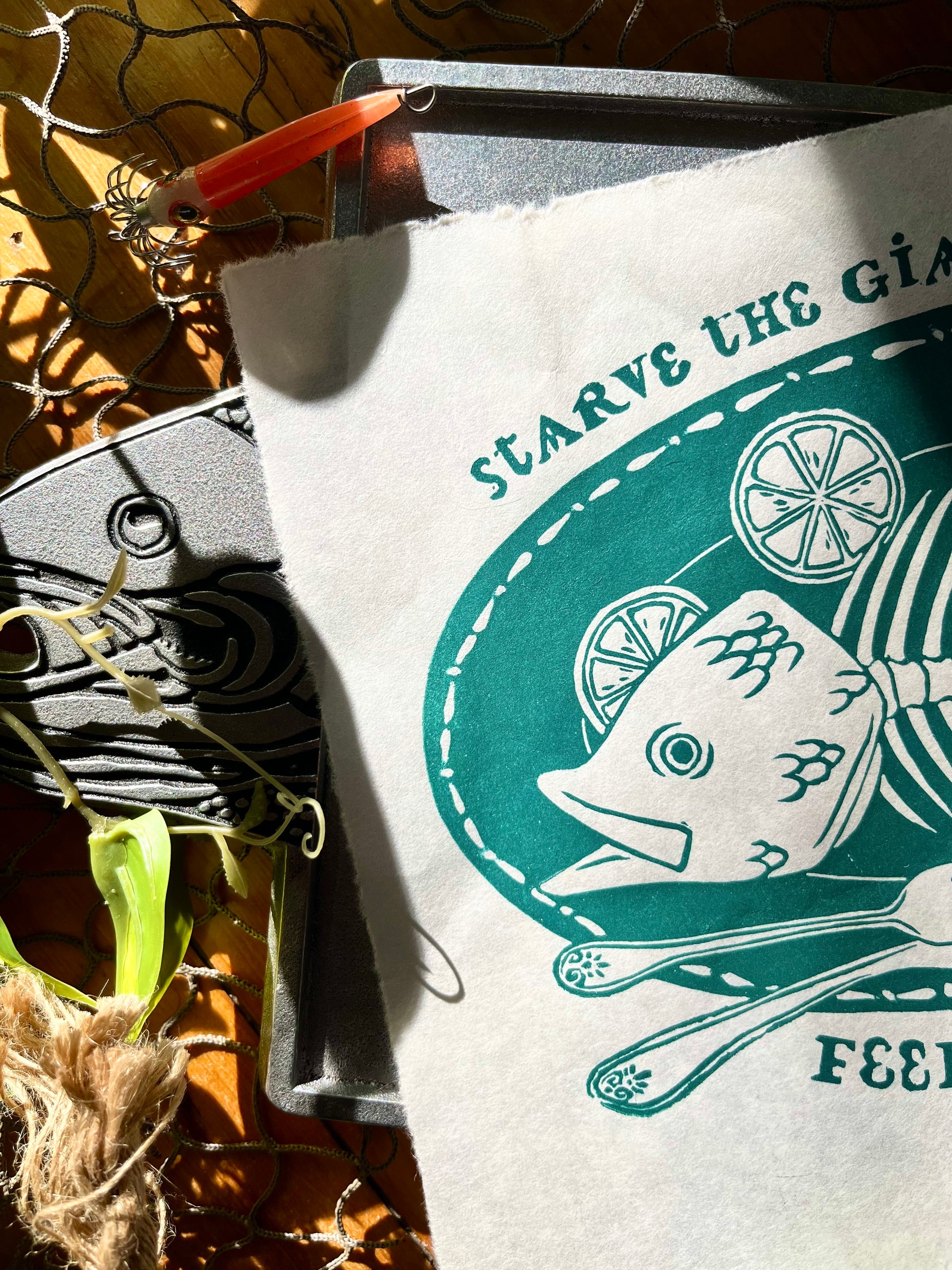8x10 inch print with teal ink. Printed on Koto rice paper