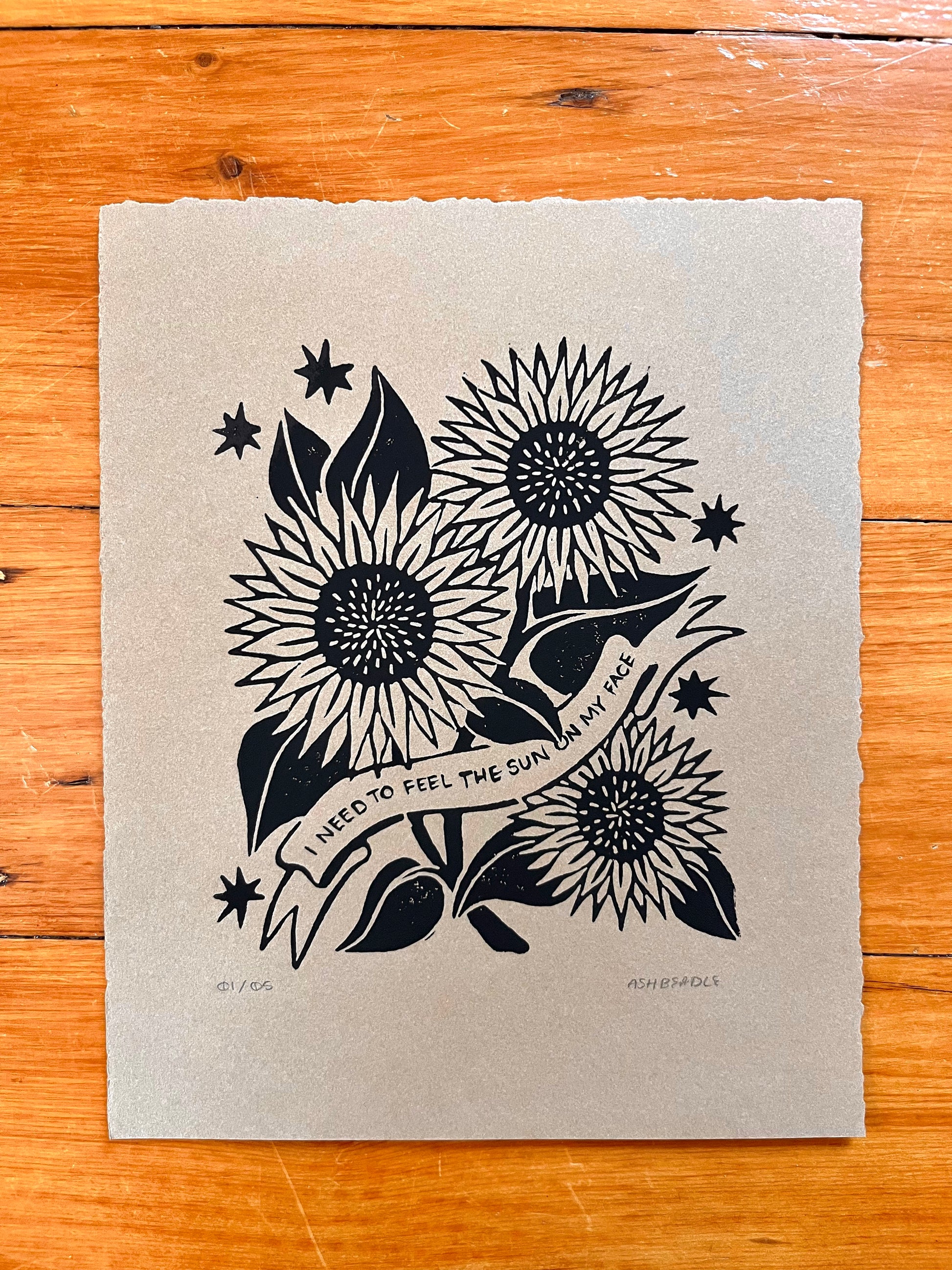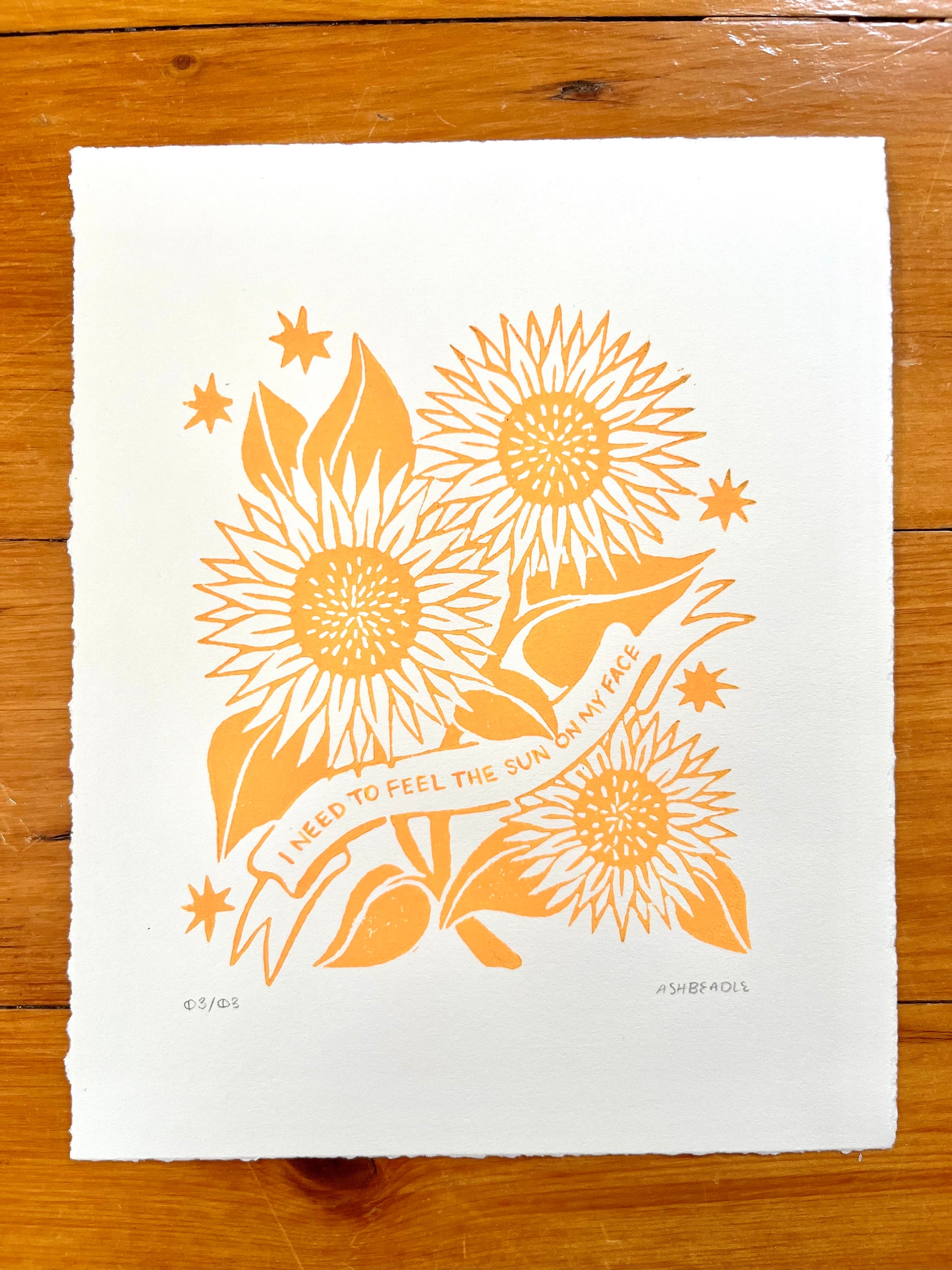 Feel The Sun Lino Print
