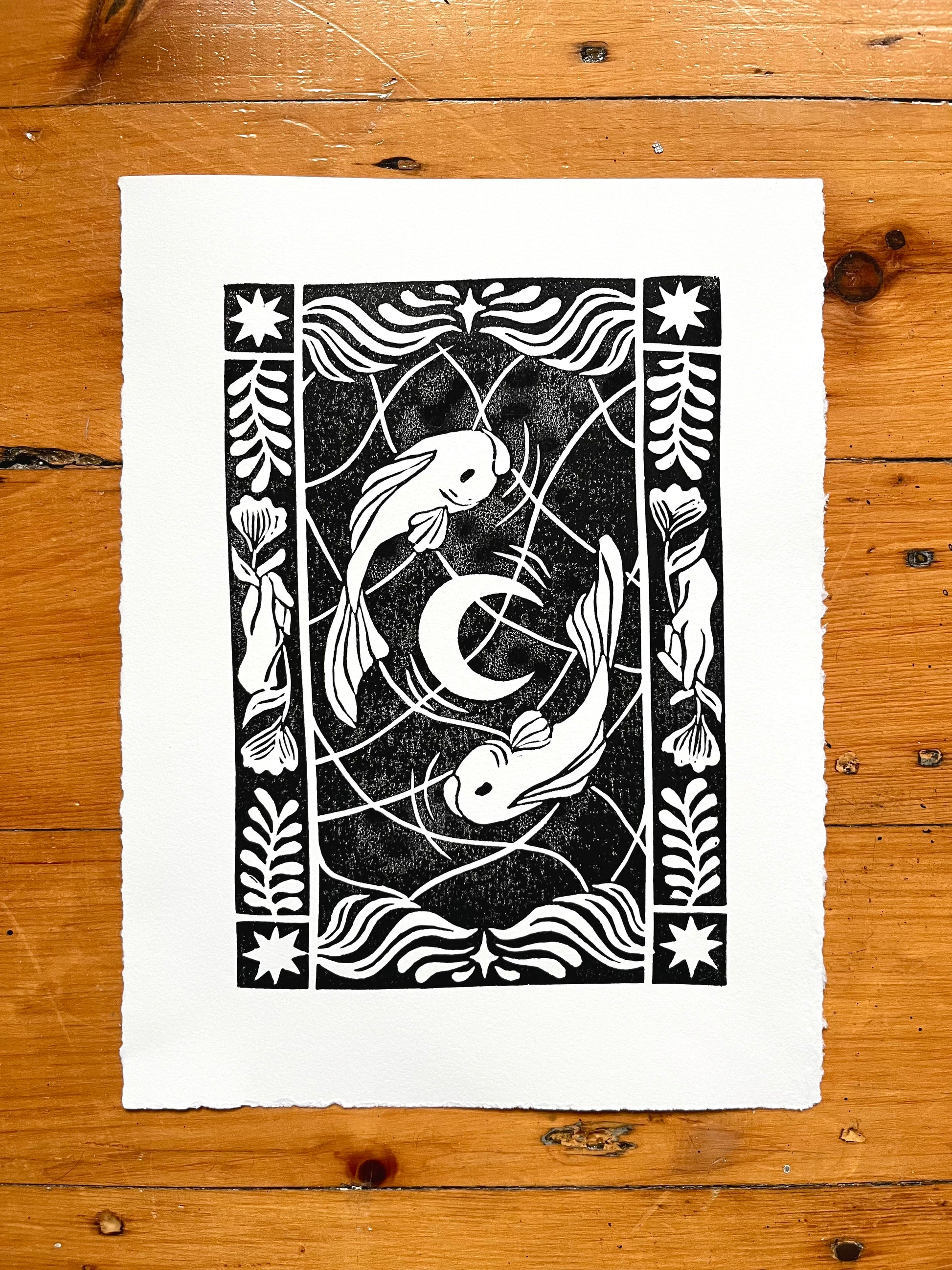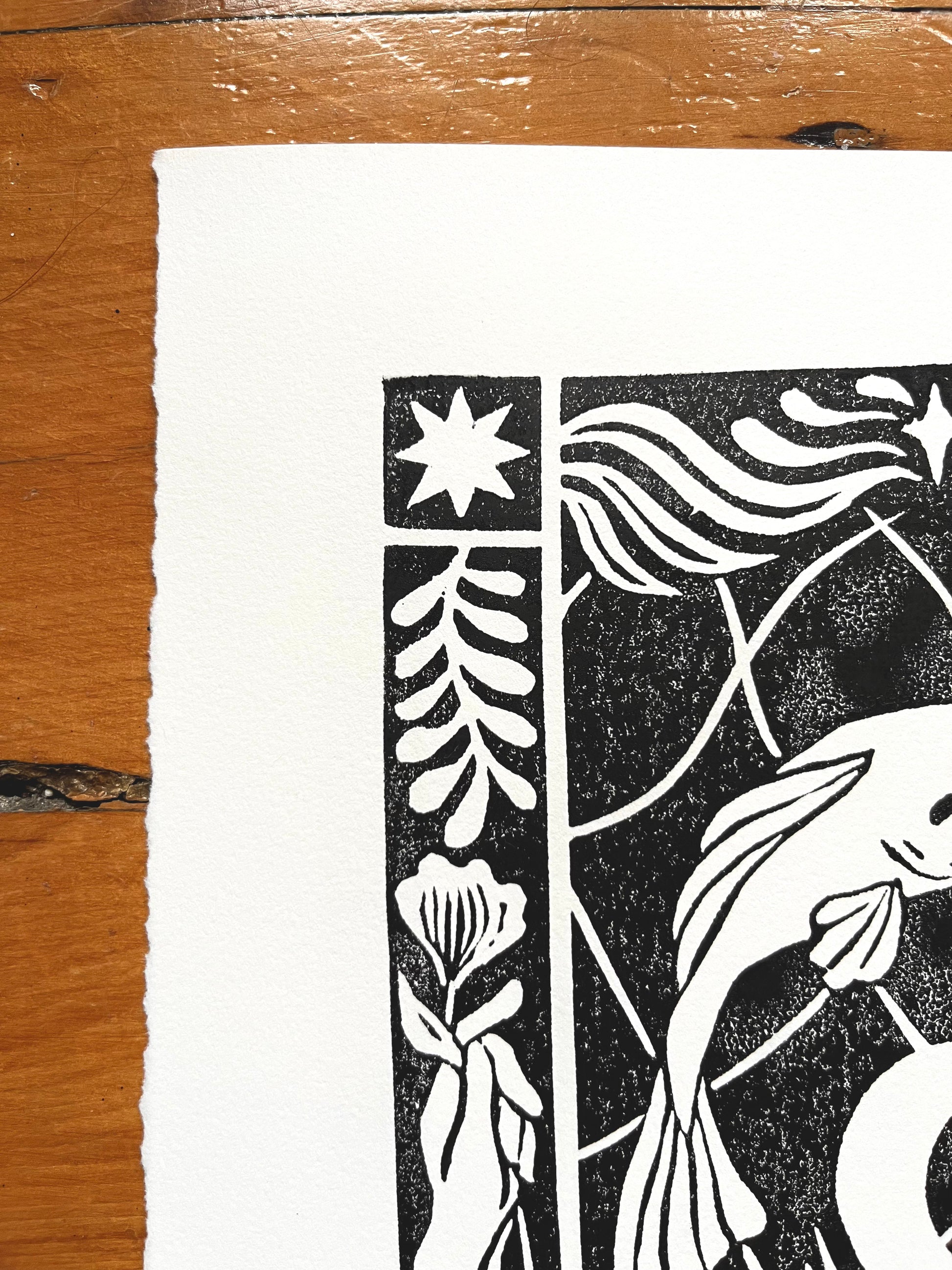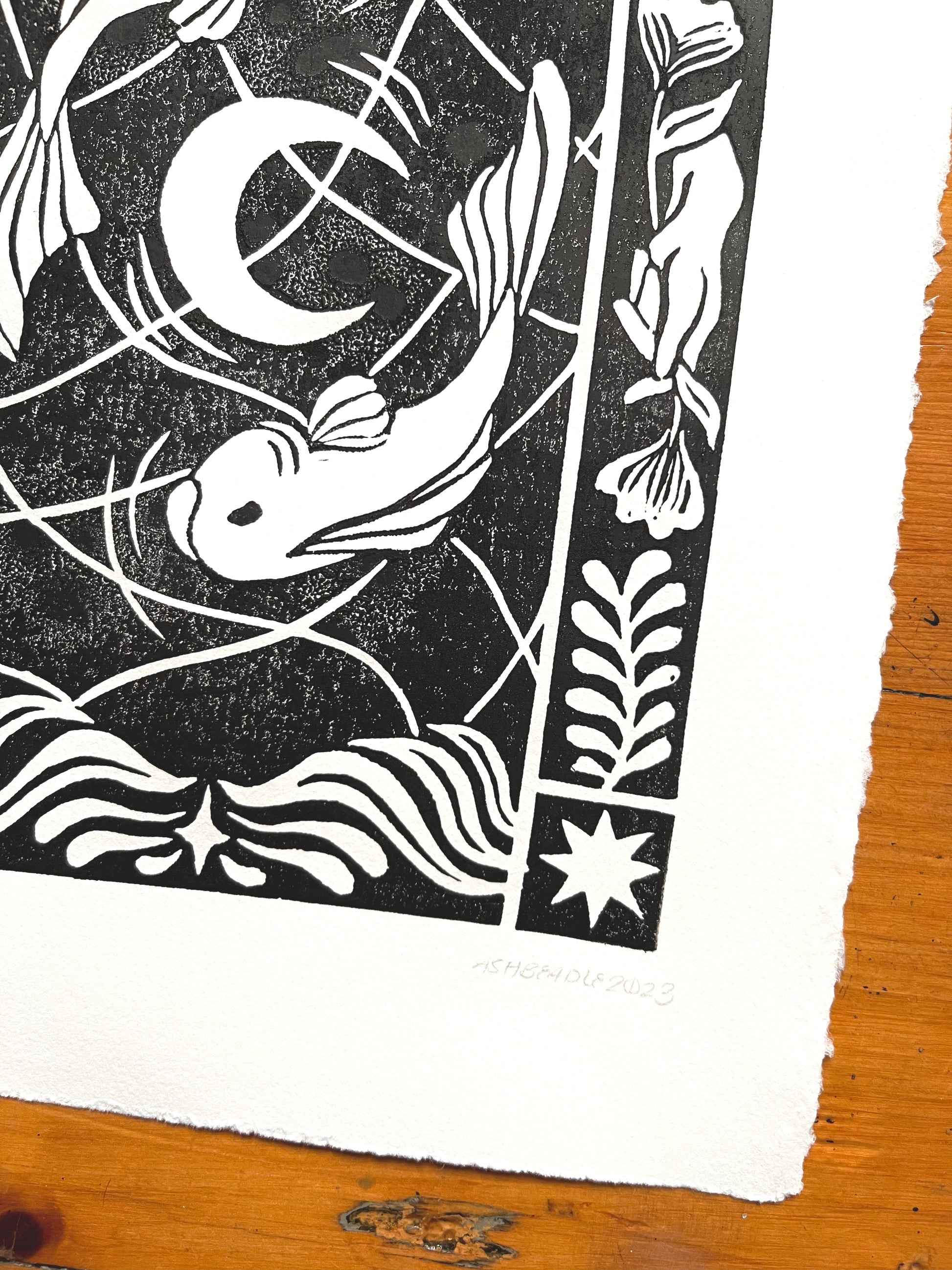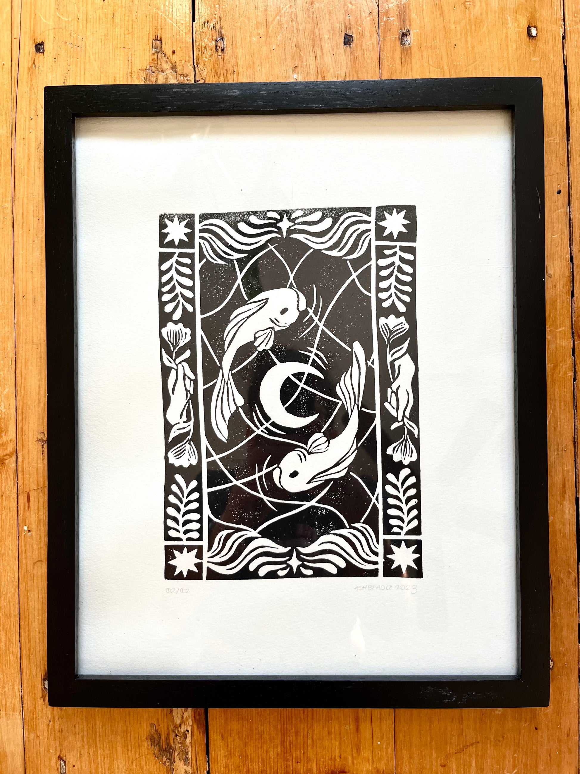 Framed Lunar Fish (Pisces) print. LAST ONE
