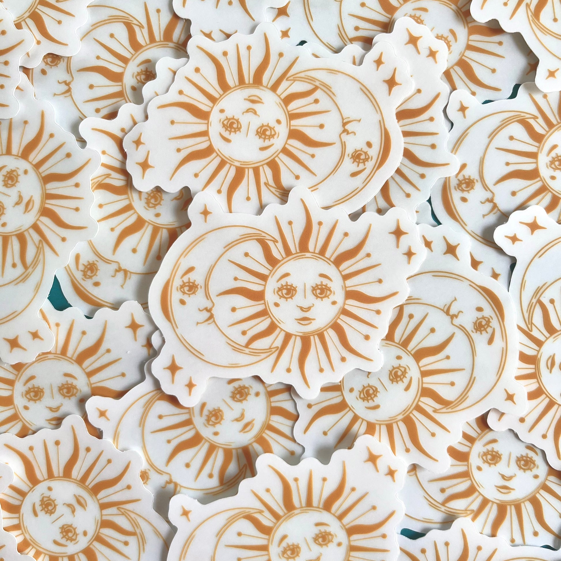 CLEAR vinyl sun and moon sticker for all of your celestial needs.